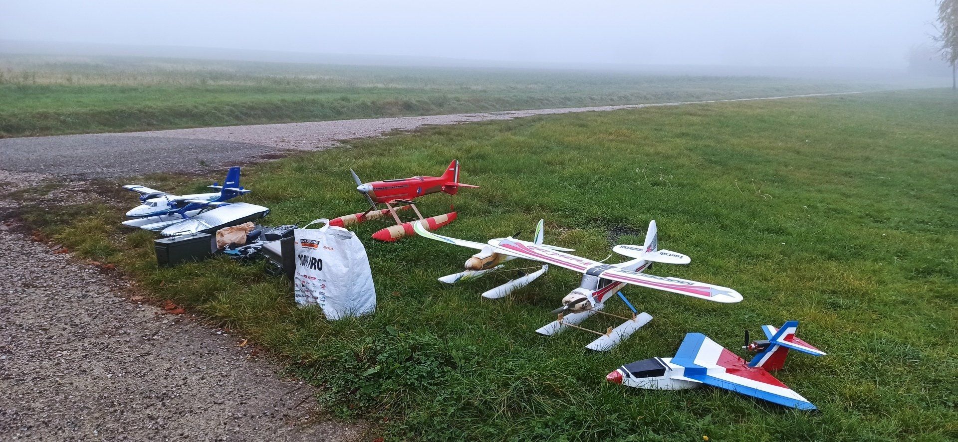 Période hivernale propice aux constructions : à gauche un nouveau modèle tout en carton, spécialité de Yann, à droite un modèle tout en dépron chez Thierry : le fameux Polaris, polyvalent, qui s'exprime aussi bien depuis une piste que depuis un plan d'eau.