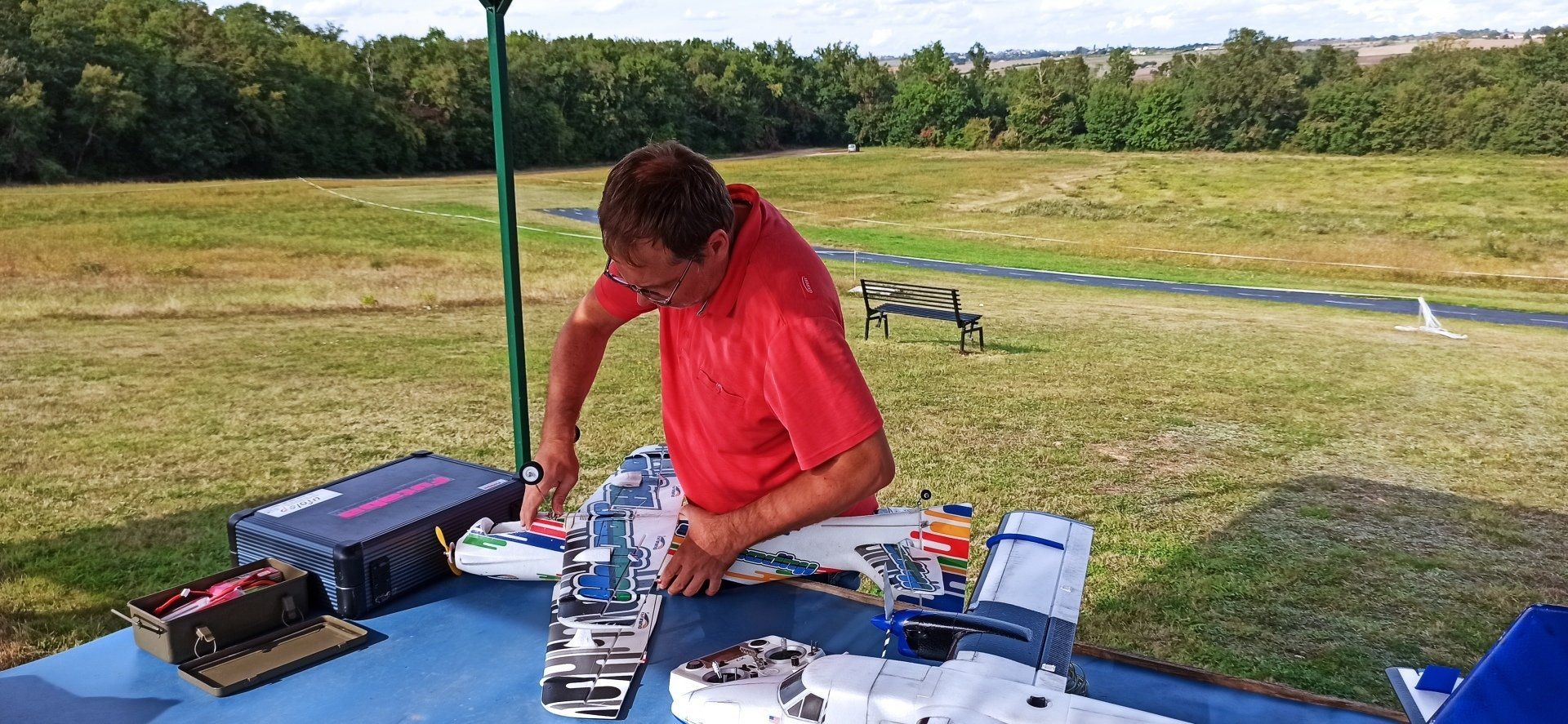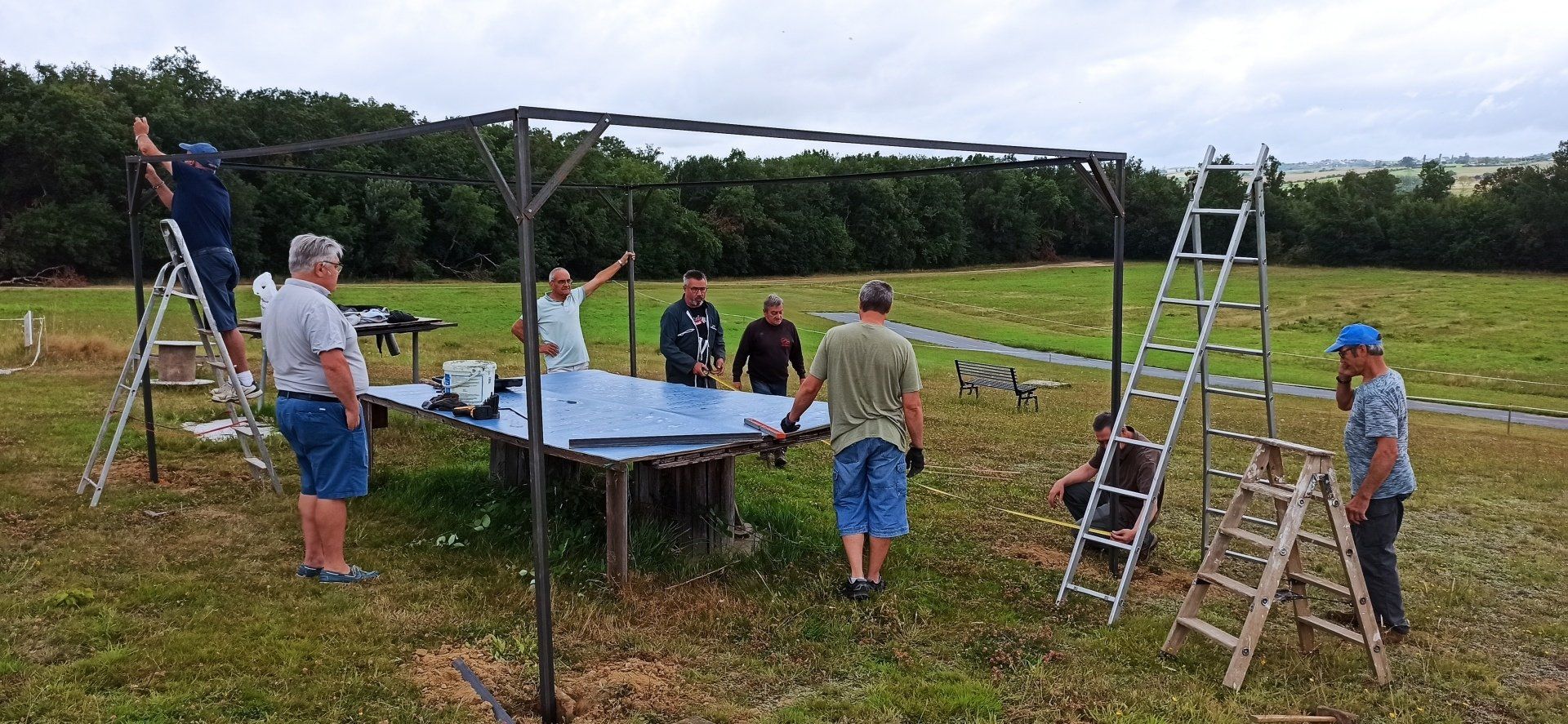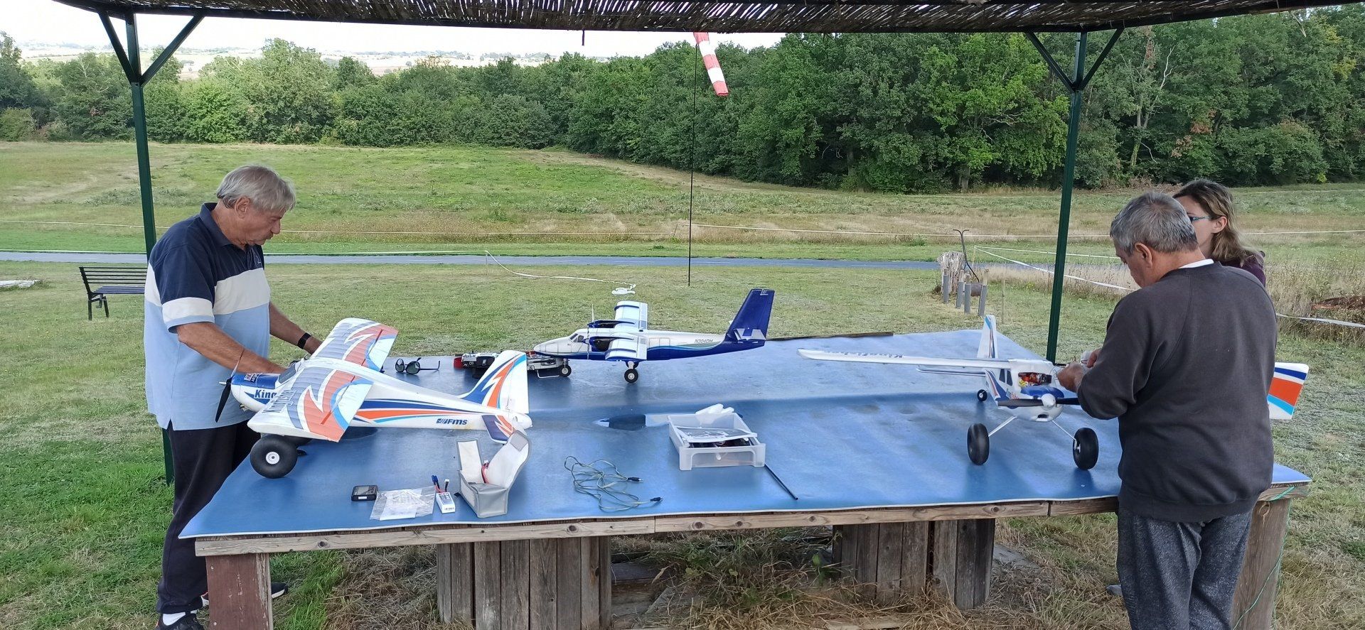 Mois d'août et activités diverses au CMC : mise en place d'une zone ombragée et vols au terrain et au lac. Egalement de nouvelles constructions !